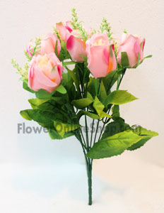 ดอกไม้ประดิษฐ์ โบตั๋น ชมพู แซมใบ x 18