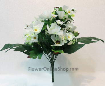 ดอกไม้ประดิษฐ์ ลิลลี่ไทเกอร์+เดซี่+กิ่งหัวใจ ขาว x 17