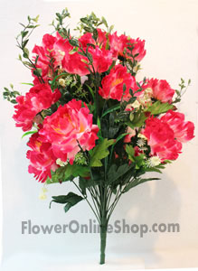 ดอกไม้ประดิษฐ์ โบตั๋น บานเย็น แซมใบ x 18
