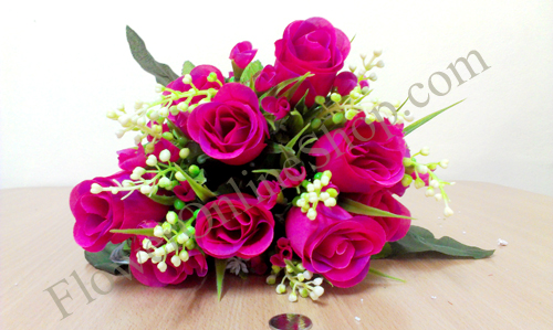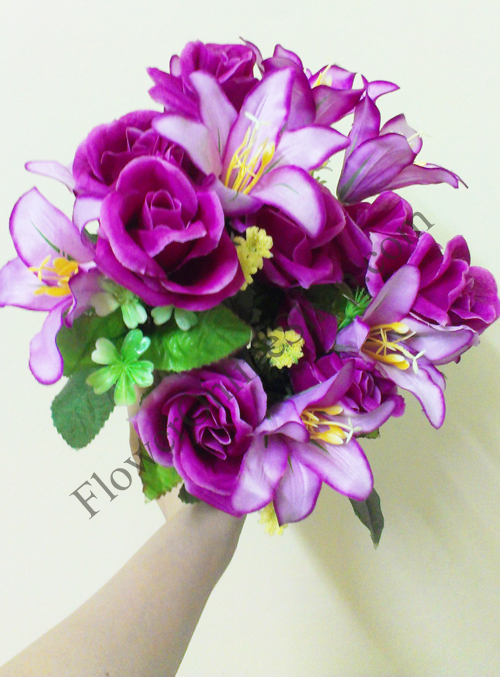 ดอกไม้ประดิษฐ์ กุหลาบม่วงแดง + ลิลลี่ม่วง x 18