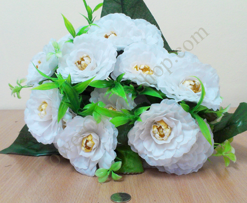 ดอกไม้ประดิษฐ์ โบตั๋น ขาว แซมใบ x 18