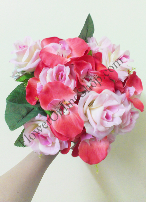ดอกไม้ประดิษฐ์ กุหลาบชมพู+กล้วยไม้แสด x 22